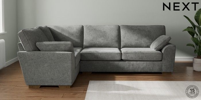 7.2.10 Stamford Large Corner Sofa - Left Hand Chunky Chenille Dark Grey Large Square Angle - Mid | Made Click here to use our website with more accessibility support, for example screen readers