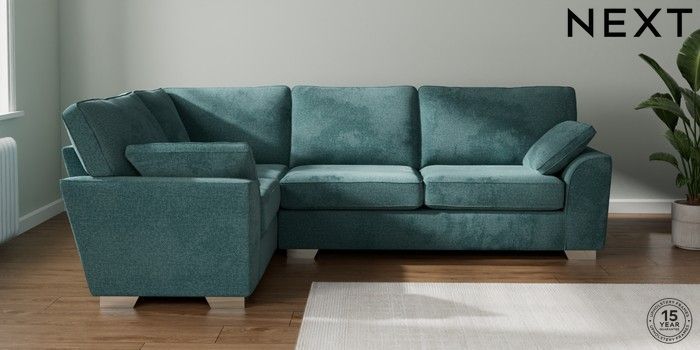 7.2.10 Stamford Large Corner Sofa - Left Hand Chunky Chenille Mid Teal Green Large Square Angle - Chrome Metal | Made Click here to use our website with more accessibility support, for example screen readers