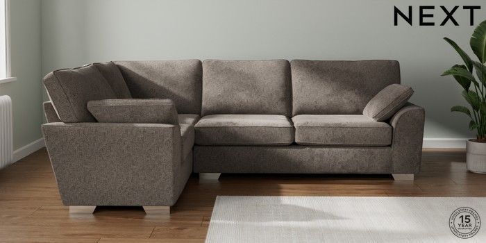 7.2.10 Stamford Large Corner Sofa - Left Hand Chunky Chenille Mink Brown Large Square Angle - Chrome Metal | Made Click here to use our website with more accessibility support, for example screen readers