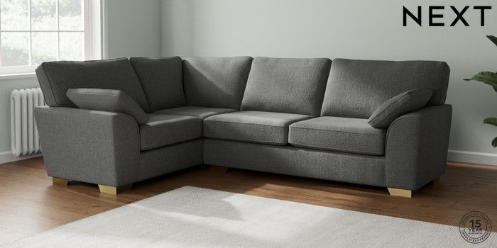 7.2.10 Stamford Large Corner Sofa - Left Hand Chunky Texture Dark Grey Large Square Angle - Brushed Brass | Made Click here to use our website with more accessibility support, for example screen readers