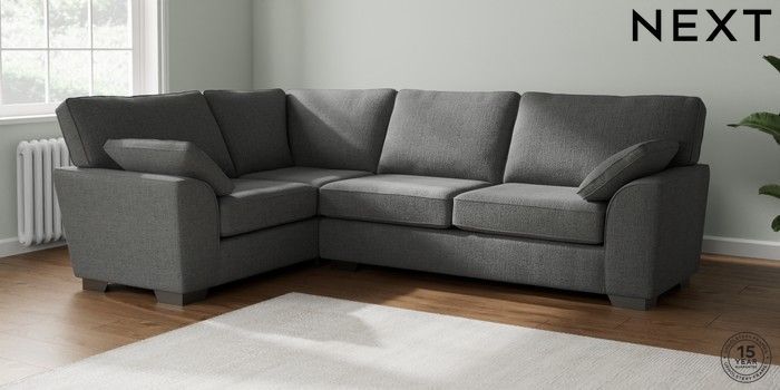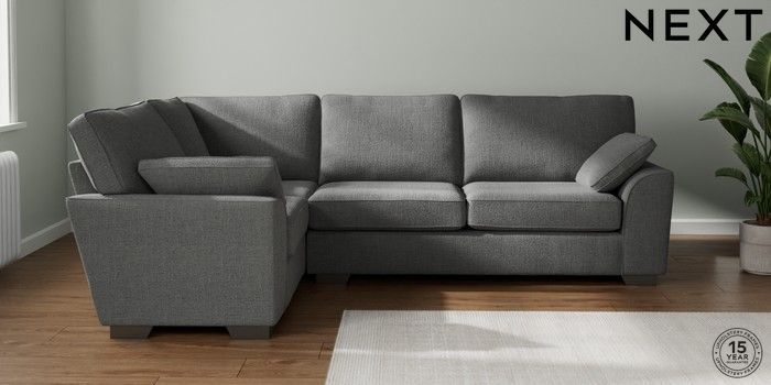 7.2.10 Stamford Large Corner Sofa - Left Hand Chunky Texture Dark Grey Large Square Angle - Gunmetal | Made Click here to use our website with more accessibility support, for example screen readers