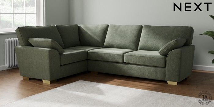 7.2.10 Stamford Large Corner Sofa - Left Hand Chunky Texture Mid Forest Green Large Square Angle - Brushed Brass | Made Click here to use our website with more accessibility support, for example screen readers