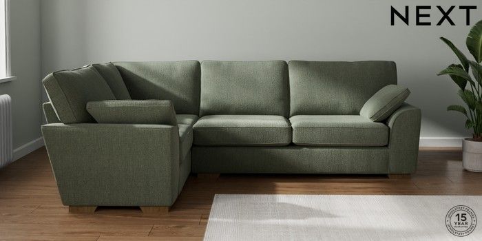 7.2.10 Stamford Large Corner Sofa - Left Hand Chunky Texture Mid Forest Green Large Square Angle - Mid | Made Click here to use our website with more accessibility support, for example screen readers