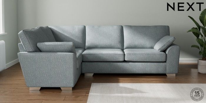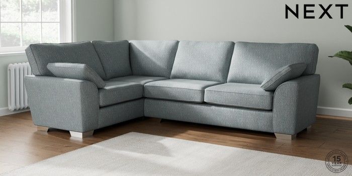 7.2.10 Stamford Large Corner Sofa - Left Hand Chunky Weave Mid Blue Large Square Angle - Chrome Metal | Made Click here to use our website with more accessibility support, for example screen readers