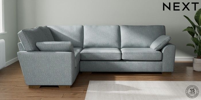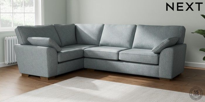 7.2.10 Stamford Large Corner Sofa - Left Hand Chunky Weave Mid Blue Large Square Angle - Mid | Made Click here to use our website with more accessibility support, for example screen readers