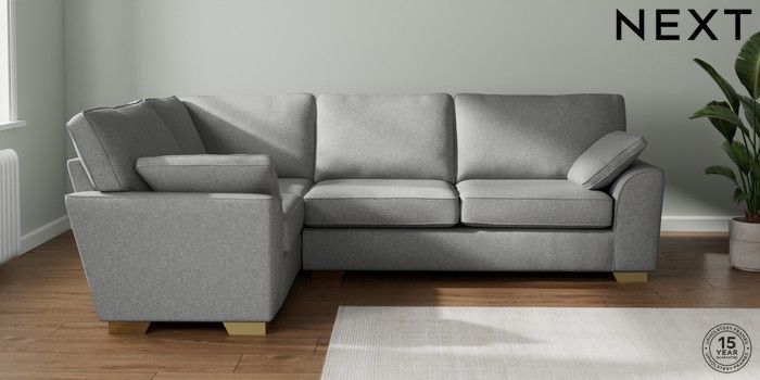7.2.10 Stamford Large Corner Sofa - Left Hand Chunky Weave Mid Grey Large Square Angle - Brushed Brass | Made Click here to use our website with more accessibility support, for example screen readers