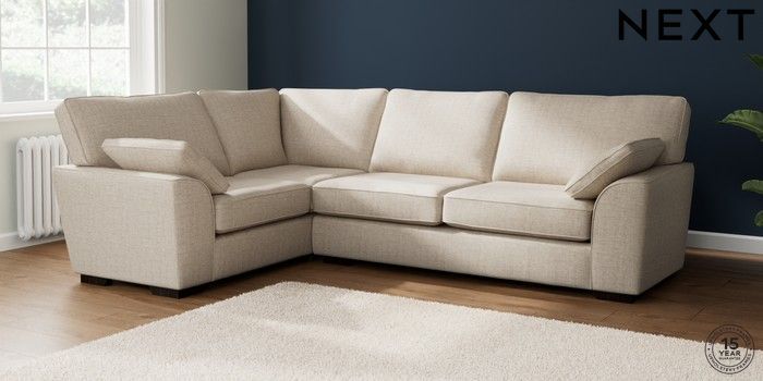 7.2.10 Stamford Large Corner Sofa - Left Hand Chunky Weave Mid Natural Large Square Angle - Dark | Made Click here to use our website with more accessibility support, for example screen readers