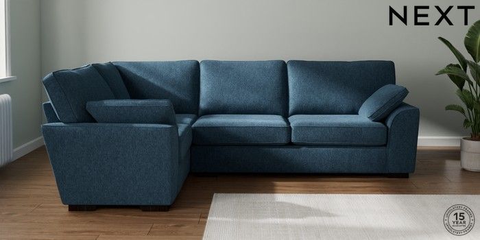 7.2.10 Stamford Large Corner Sofa - Left Hand Cotswold Chenille Dark Blue Large Square Angle - Dark | Made Click here to use our website with more accessibility support, for example screen readers