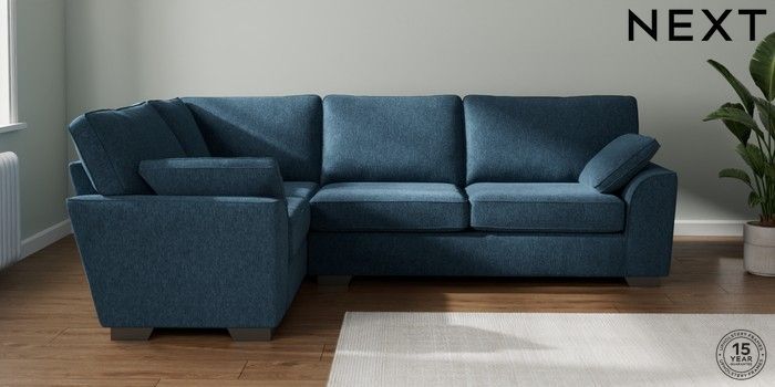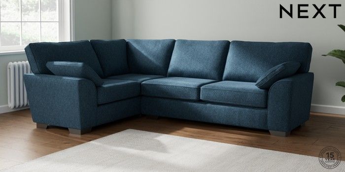 7.2.10 Stamford Large Corner Sofa - Left Hand Cotswold Chenille Dark Blue Large Square Angle - Gunmetal | Made Click here to use our website with more accessibility support, for example screen readers