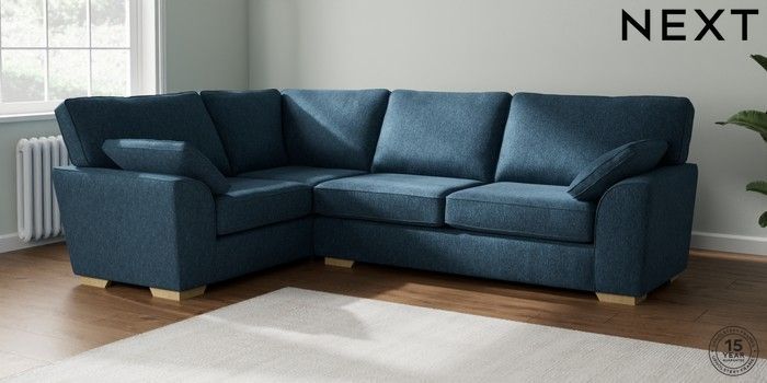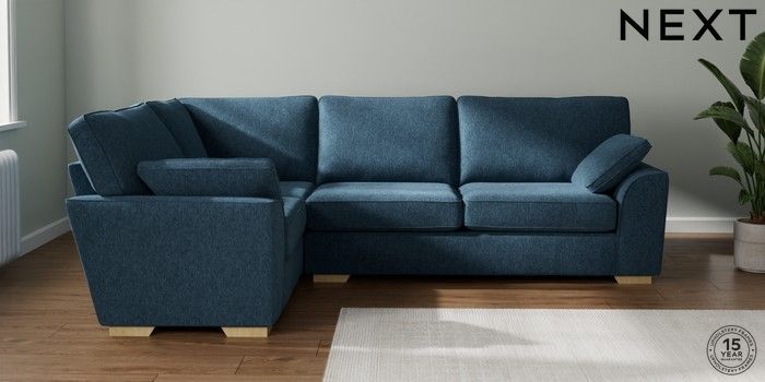 7.2.10 Stamford Large Corner Sofa - Left Hand Cotswold Chenille Dark Blue Large Square Angle - Light | Made Click here to use our website with more accessibility support, for example screen readers