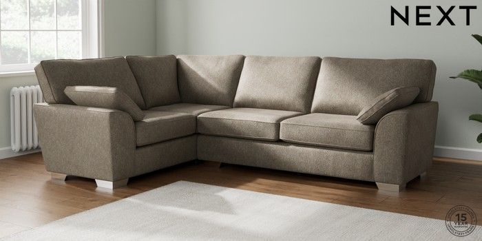 7.2.10 Stamford Large Corner Sofa - Left Hand Cotswold Chenille Mid Mink Brown Large Square Angle - Chrome Metal | Made Click here to use our website with more accessibility support, for example screen readers