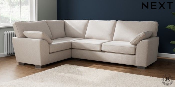 7.2.10 Stamford Large Corner Sofa - Left Hand Cotswold Chenille Oyster Large Square Angle - Gunmetal | Made Click here to use our website with more accessibility support, for example screen readers