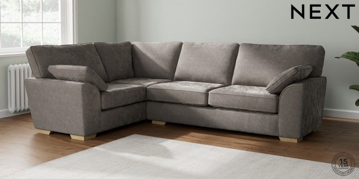 7.2.10 Stamford Large Corner Sofa - Left Hand Distressed Velour French Grey Large Square Angle - Light | Made Click here to use our website with more accessibility support, for example screen readers