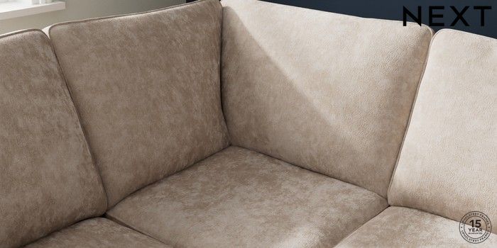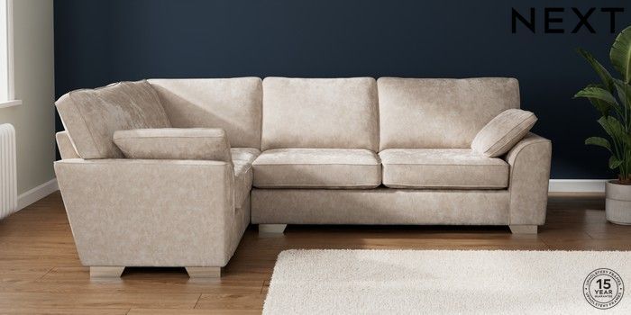 7.2.10 Stamford Large Corner Sofa - Left Hand Distressed Velour Mid Natural Large Square Angle - Chrome Metal | Made Click here to use our website with more accessibility support, for example screen readers