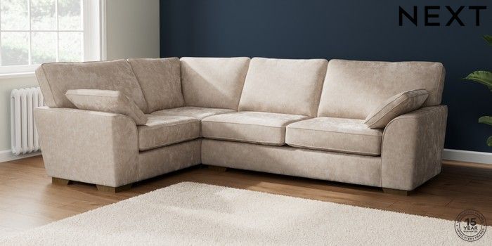 7.2.10 Stamford Large Corner Sofa - Left Hand Distressed Velour Mid Natural Large Square Angle - Mid | Made Click here to use our website with more accessibility support, for example screen readers