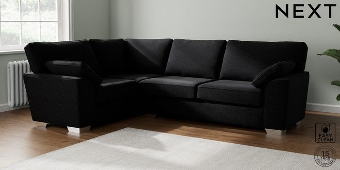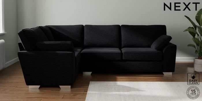 7.2.10 Stamford Large Corner Sofa - Left Hand Fine Chenille Easy Clean Black Large Square Angle - Chrome Metal | Made Click here to use our website with more accessibility support, for example screen readers