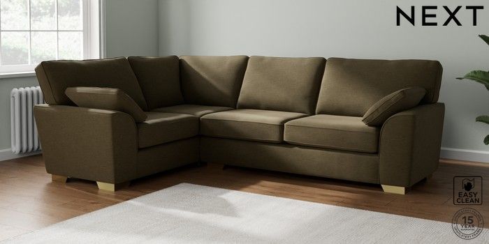 7.2.10 Stamford Large Corner Sofa - Left Hand Fine Chenille Easy Clean Dark Moss Green Large Square Angle - Brushed Brass | Made Click here to use our website with more accessibility support, for example screen readers