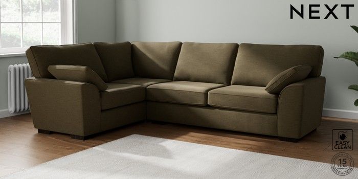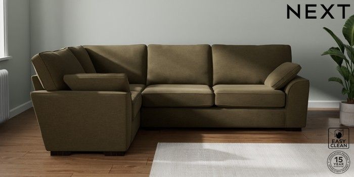 7.2.10 Stamford Large Corner Sofa - Left Hand Fine Chenille Easy Clean Dark Moss Green Large Square Angle - Dark | Made Click here to use our website with more accessibility support, for example screen readers