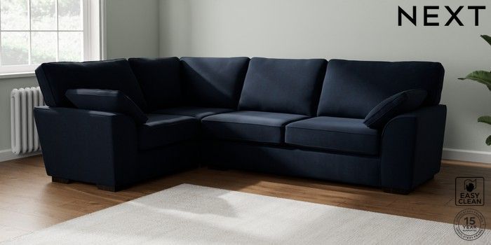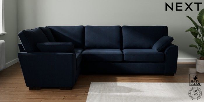 7.2.10 Stamford Large Corner Sofa - Left Hand Fine Chenille Easy Clean Dark Navy Blue Large Square Angle - Dark | Made Click here to use our website with more accessibility support, for example screen readers