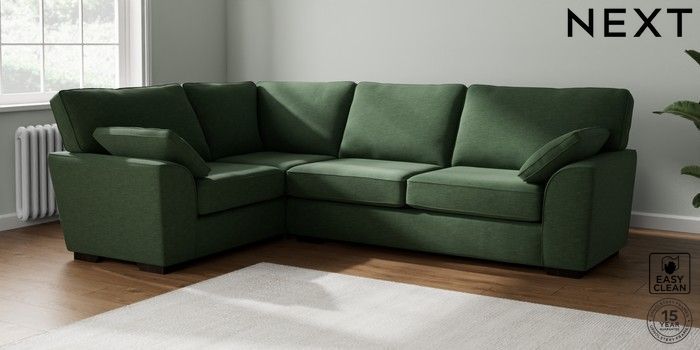 7.2.10 Stamford Large Corner Sofa - Left Hand Fine Chenille Easy Clean Mid Khaki Green Large Square Angle - Dark | Made Click here to use our website with more accessibility support, for example screen readers