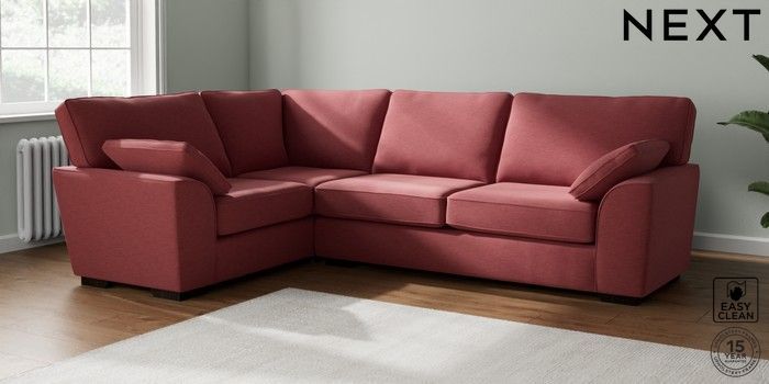 7.2.10 Stamford Large Corner Sofa - Left Hand Fine Chenille Easy Clean Mid Pink Large Square Angle - Dark | Made Click here to use our website with more accessibility support, for example screen readers