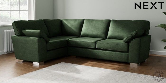 7.2.10 Stamford Large Corner Sofa - Left Hand Luxe Chenille Dark Green Large Square Angle - Chrome Metal | Made Click here to use our website with more accessibility support, for example screen readers