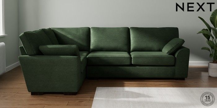 7.2.10 Stamford Large Corner Sofa - Left Hand Luxe Chenille Dark Green Large Square Angle - Dark | Made Click here to use our website with more accessibility support, for example screen readers