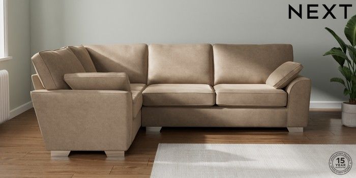 7.2.10 Stamford Large Corner Sofa - Left Hand Luxe Chenille Mid Camel Beige Large Square Angle - Chrome Metal | Made Click here to use our website with more accessibility support, for example screen readers