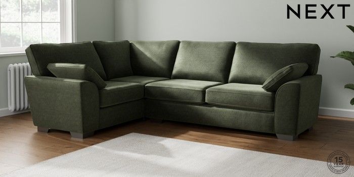 7.2.10 Stamford Large Corner Sofa - Left Hand Luxe Chenille Mid Green Large Square Angle - Gunmetal | Made Click here to use our website with more accessibility support, for example screen readers