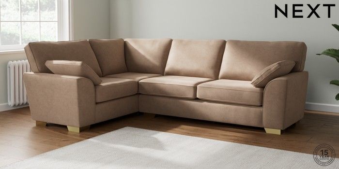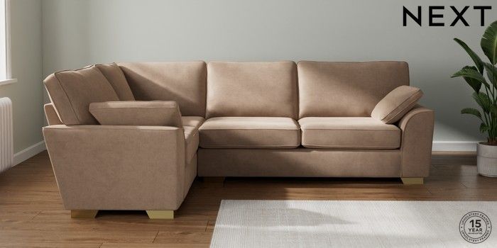 7.2.10 Stamford Large Corner Sofa - Left Hand Luxe Chenille Mid Natural Large Square Angle - Brushed Brass | Made Click here to use our website with more accessibility support, for example screen readers