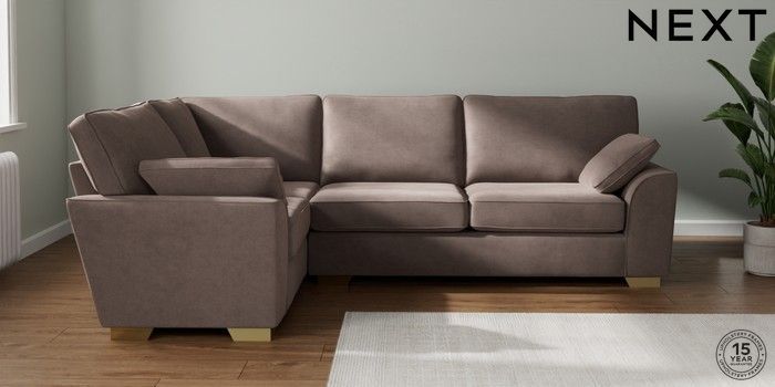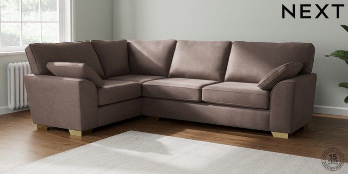 7.2.10 Stamford Large Corner Sofa - Left Hand Luxe Chenille Mink Brown Large Square Angle - Brushed Brass | Made Click here to use our website with more accessibility support, for example screen readers