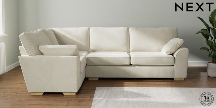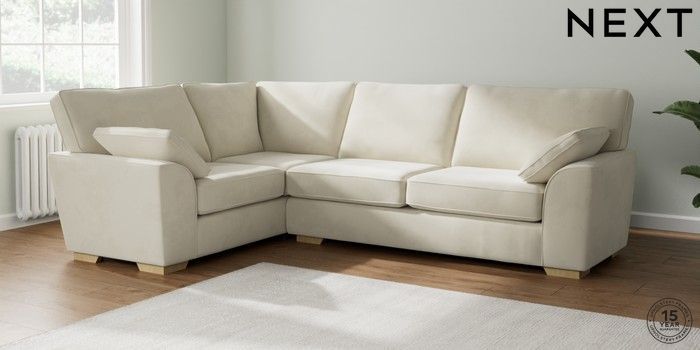 7.2.10 Stamford Large Corner Sofa - Left Hand Luxe Chenille Oyster Large Square Angle - Light | Made Click here to use our website with more accessibility support, for example screen readers