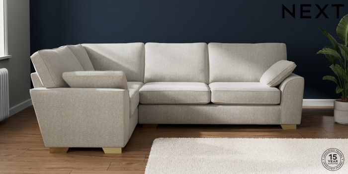 7.2.10 Stamford Large Corner Sofa - Left Hand Multi Weave Light Blue Large Square Angle - Brushed Brass | Made Click here to use our website with more accessibility support, for example screen readers