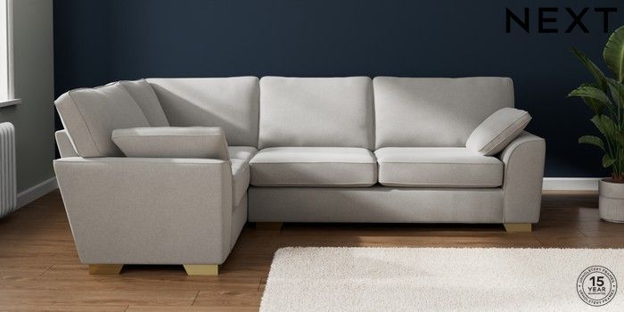 7.2.10 Stamford Large Corner Sofa - Left Hand Natural Mix Light Grey Large Square Angle - Brushed Brass | Made Click here to use our website with more accessibility support, for example screen readers