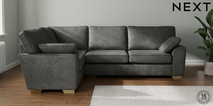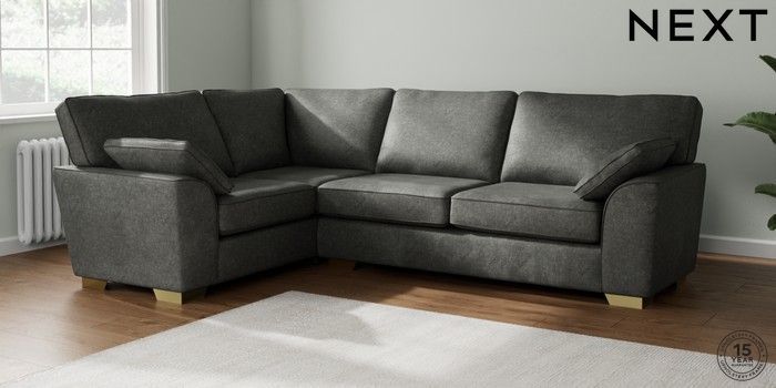 7.2.10 Stamford Large Corner Sofa - Left Hand Plush Chenille Dark Grey Large Square Angle - Brushed Brass | Made Click here to use our website with more accessibility support, for example screen readers