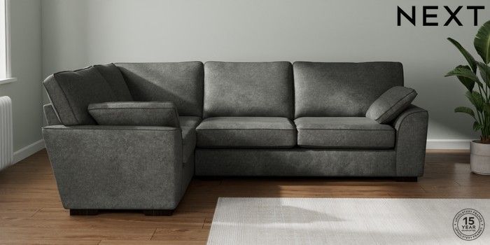 7.2.10 Stamford Large Corner Sofa - Left Hand Plush Chenille Dark Grey Large Square Angle - Dark | Made Click here to use our website with more accessibility support, for example screen readers