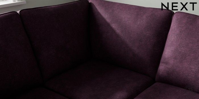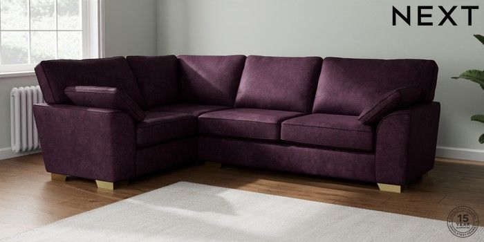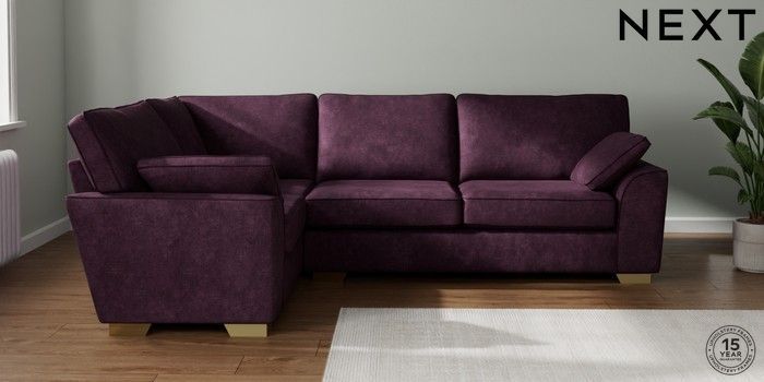 7.2.10 Stamford Large Corner Sofa - Left Hand Plush Chenille Dark Plum Purple Large Square Angle - Brushed Brass | Made Click here to use our website with more accessibility support, for example screen readers