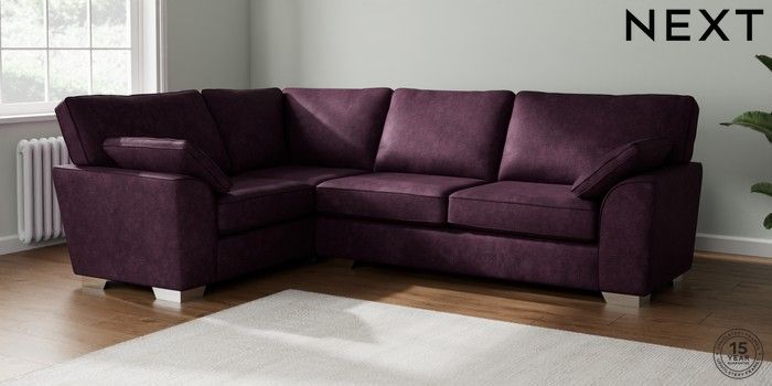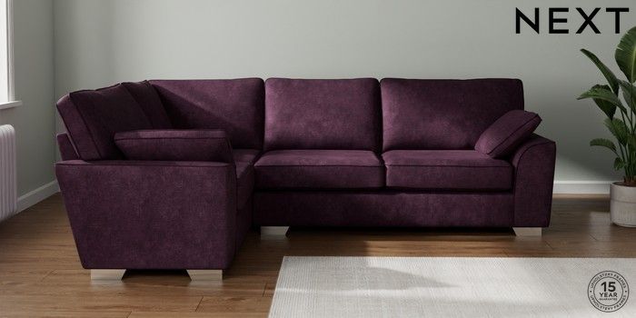 7.2.10 Stamford Large Corner Sofa - Left Hand Plush Chenille Dark Plum Purple Large Square Angle - Chrome Metal | Made Click here to use our website with more accessibility support, for example screen readers