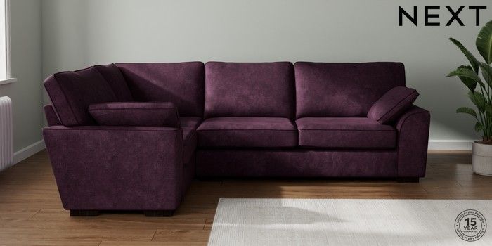 7.2.10 Stamford Large Corner Sofa - Left Hand Plush Chenille Dark Plum Purple Large Square Angle - Dark | Made Click here to use our website with more accessibility support, for example screen readers