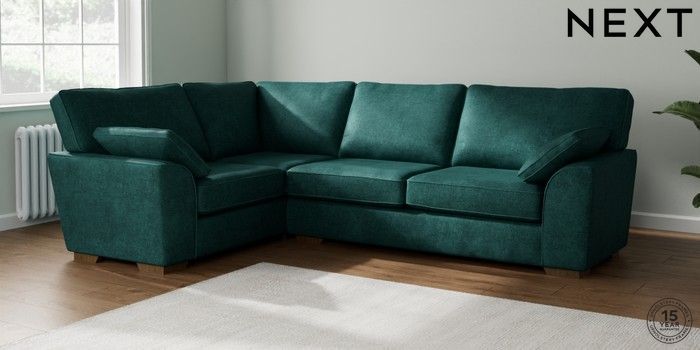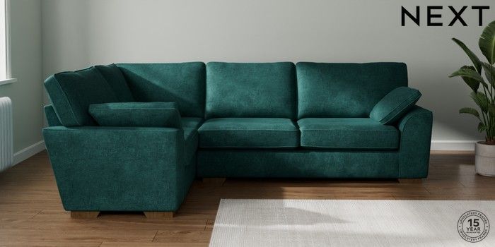7.2.10 Stamford Large Corner Sofa - Left Hand Plush Chenille Dark Teal Green Large Square Angle - Mid | Made Click here to use our website with more accessibility support, for example screen readers