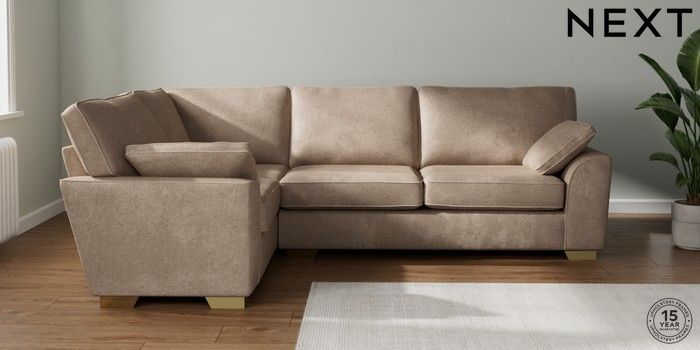 7.2.10 Stamford Large Corner Sofa - Left Hand Plush Chenille Mid Natural Large Square Angle - Brushed Brass | Made Click here to use our website with more accessibility support, for example screen readers