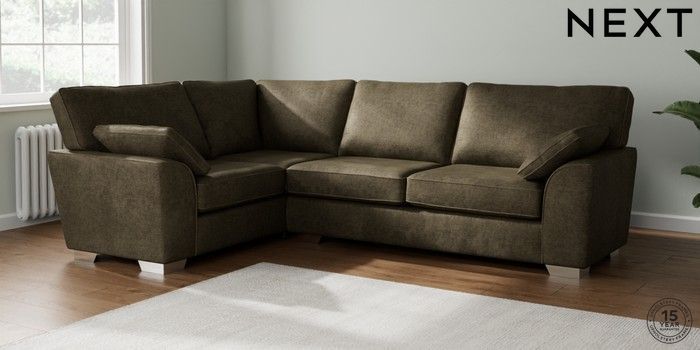 7.2.10 Stamford Large Corner Sofa - Left Hand Plush Chenille Moss Green Large Square Angle - Chrome Metal | Made Click here to use our website with more accessibility support, for example screen readers