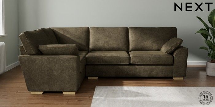 7.2.10 Stamford Large Corner Sofa - Left Hand Plush Chenille Moss Green Large Square Angle - Light | Made Click here to use our website with more accessibility support, for example screen readers