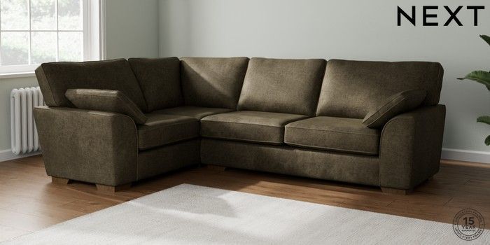 7.2.10 Stamford Large Corner Sofa - Left Hand Plush Chenille Moss Green Large Square Angle - Mid | Made Click here to use our website with more accessibility support, for example screen readers