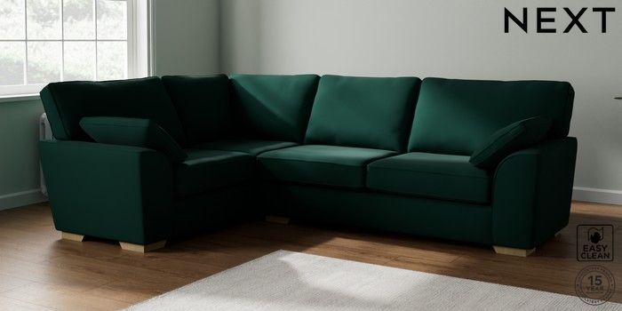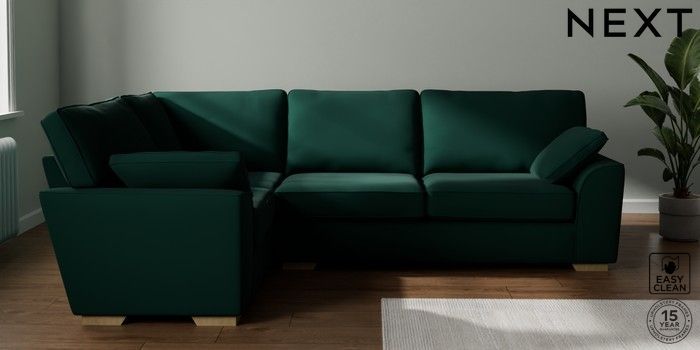 7.2.10 Stamford Large Corner Sofa - Left Hand Plush Velvet Easy Clean Bottle Green Large Square Angle - Light | Made Click here to use our website with more accessibility support, for example screen readers