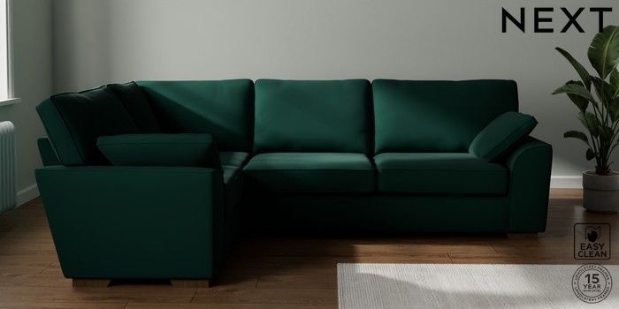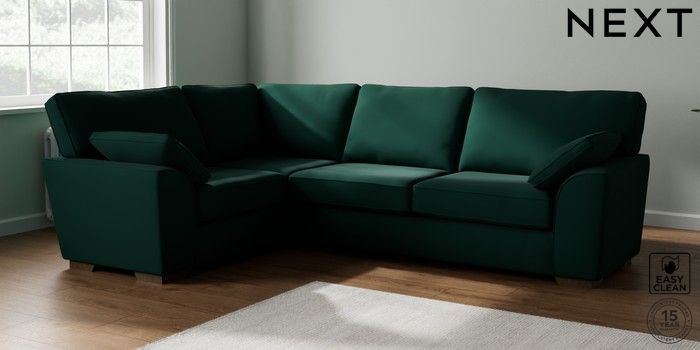 7.2.10 Stamford Large Corner Sofa - Left Hand Plush Velvet Easy Clean Bottle Green Large Square Angle - Mid | Made Click here to use our website with more accessibility support, for example screen readers