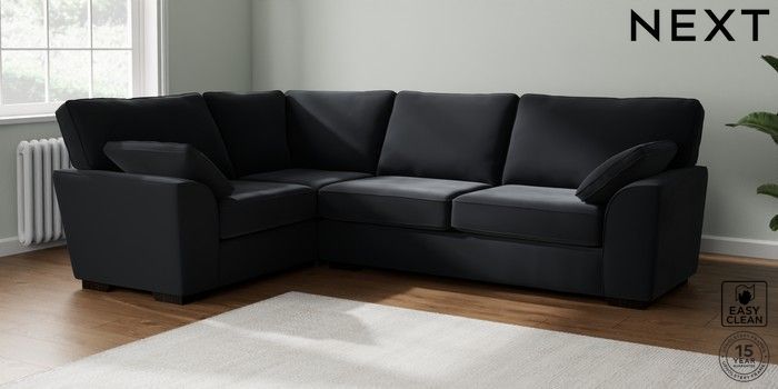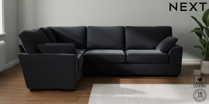 7.2.10 Stamford Large Corner Sofa - Left Hand Plush Velvet Easy Clean Charcoal Grey Large Square Angle - Dark | Made Click here to use our website with more accessibility support, for example screen readers