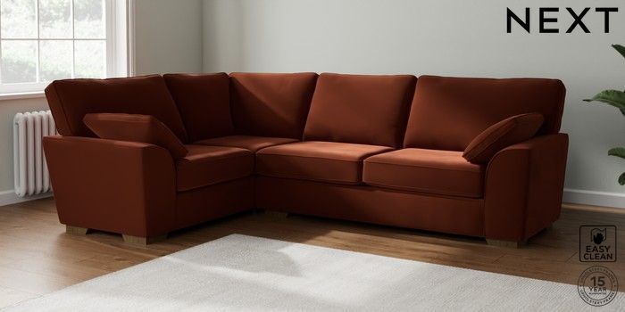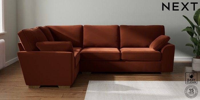 7.2.10 Stamford Large Corner Sofa - Left Hand Plush Velvet Easy Clean Ginger Orange Large Square Angle - Mid | Made Click here to use our website with more accessibility support, for example screen readers