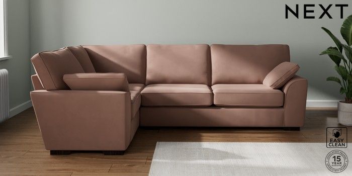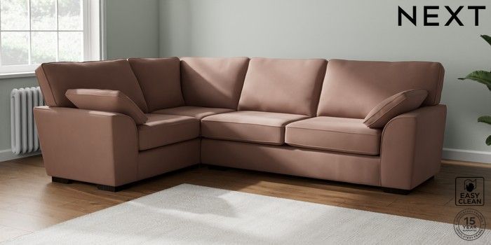 7.2.10 Stamford Large Corner Sofa - Left Hand Plush Velvet Easy Clean Mid Natural Large Square Angle - Dark | Made Click here to use our website with more accessibility support, for example screen readers