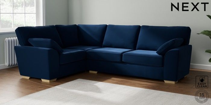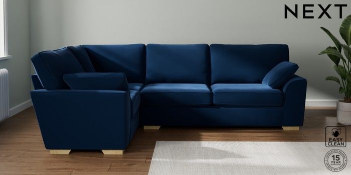 7.2.10 Stamford Large Corner Sofa - Left Hand Plush Velvet Easy Clean Navy Blue Large Square Angle - Light | Made Click here to use our website with more accessibility support, for example screen readers